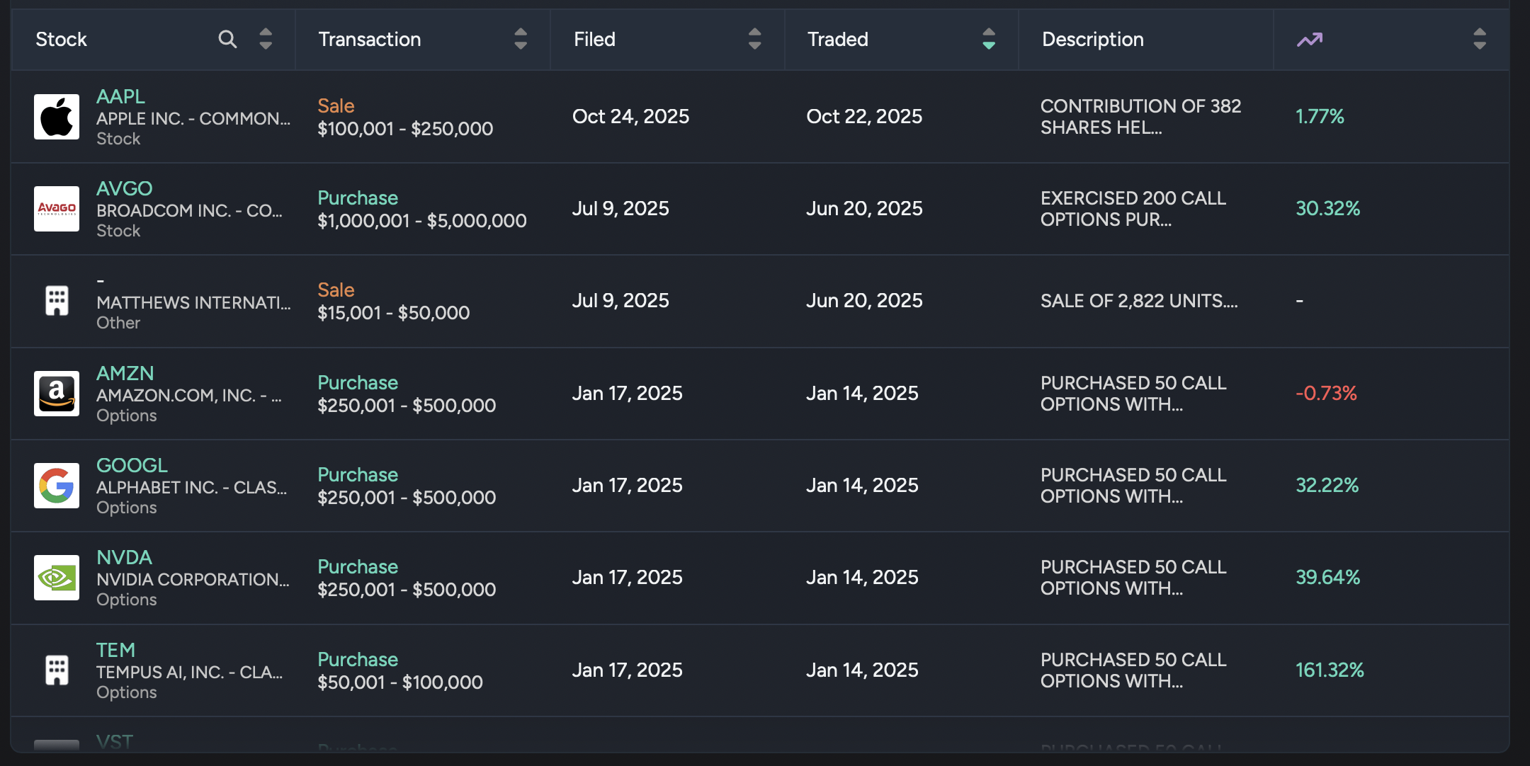 当然我们今天要讨论的不是 insider trading,这个话题没什么意思,我们要讨论更有趣的内容,就是 Pelosi 的交易策略。我长期追踪 Pelosi 的交易动态,她的交易频率非常低,在整个 2025 年只有 8 笔交易,更有趣的是,这 8 笔交易几乎全都是 Options Trading,唯一一笔 Stock 的 Purchase 也是 Options 的 exercise。
